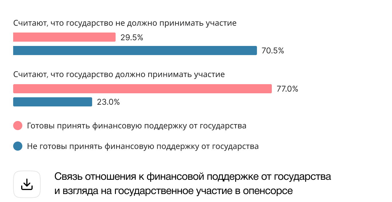 У нас в стране точно есть много индивидуальных контрибьюторов, но у них нет никакого шанса на системном уровне взаимодействовать с госкомпаниями и коммерческими компаниями по развитию опенсорса за денежку. Более того, сегодня даже противозаконно получать донаты за свою работу из-за рубежа. Соответственно, института оказания финансовой помощи индивидуальным контрибьюторам в стране нет. Грантовой программы тоже практически нет, и не всегда очевидно, как ее получить.